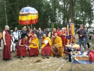 The following day, His Holiness had several project meetings with officials and foundation members and with Bob Jon Sunim who is currently planning the construction of another large Peace Stupa in Austria. On July 17 His Holiness left for Germany where he went to perform yet another groundbreaking ceremony at a future Drikung Kagyu retreat center.