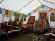 In the evening there was a gathering of the devotees in the gompa at the center. So many people were present that they did not all fit inside the gompa. His Holiness spoke to the Sangha and many took refuge.