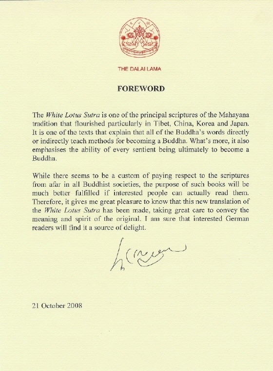Ebenso wie die Bibel ist das Lotos-Sutra ein Werk vieler Autoren, welches Jahrhunderte nach dem Tod des Religionsstifters aufgezeichnet wurde. Im Land Kucha wurde zwischen ca. 350 n. Chr. und 380 n. Chr. dieses heute wohl berühmteste der Mahayana-Sutras aufgezeichnet. Die Mönche waren überzeugt, mit diesem Sutra den Kern der buddhistischen Lehre vollständig dokumentiert und damit für die Nachwelt erhalten zu haben. Es ist der Lehrer der Bodhisattvas und der Lebewesen, das Glücksfeld, der Kompass und die Rettung für die Lebewesen in der gegenwärtigen schwierigen Zeit.