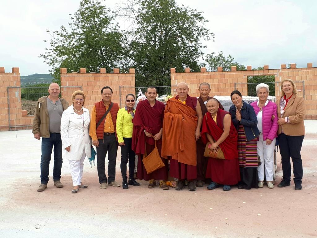 S.H. Chetsang Rinpoche mit Stupafreunden am Stupagrundstück