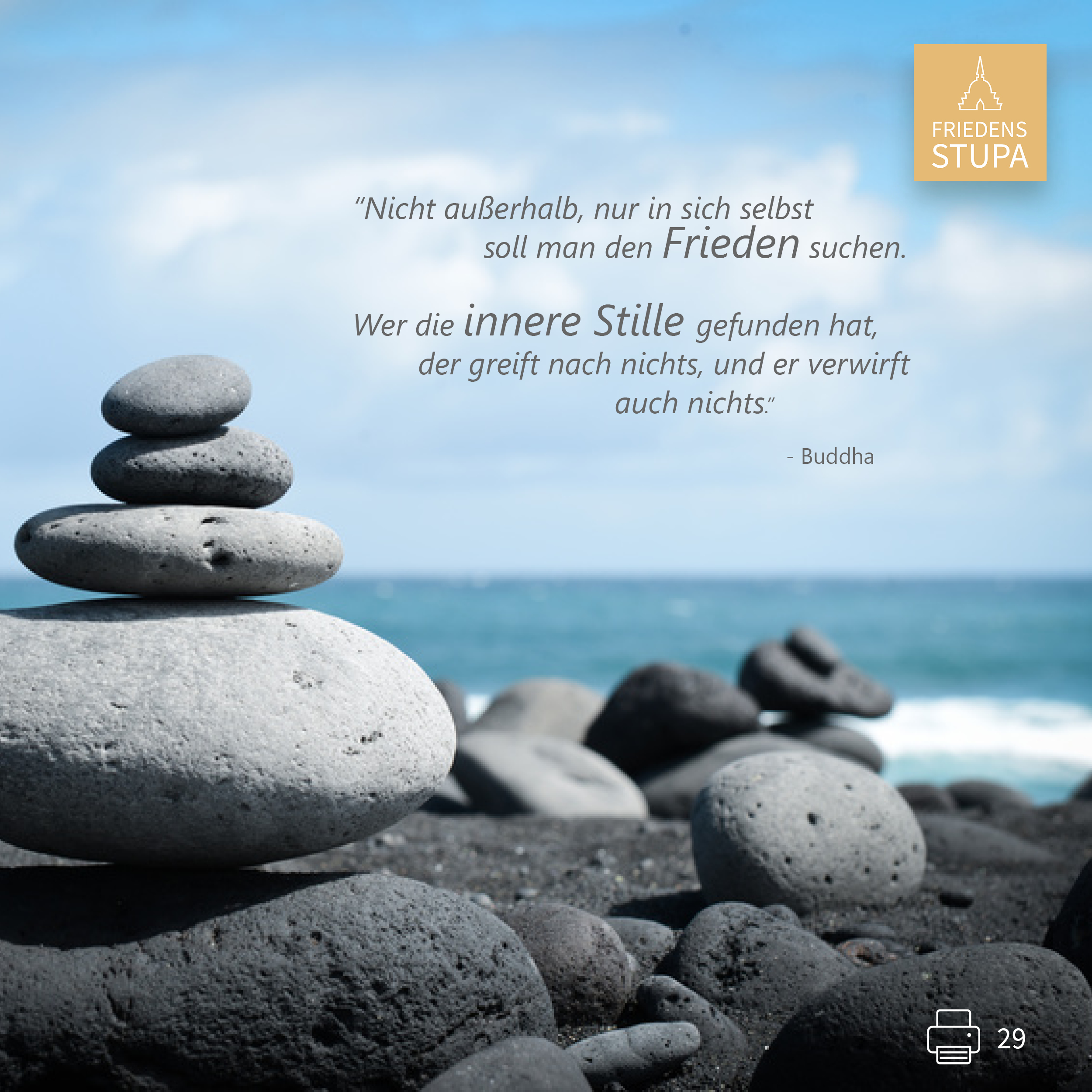 Es ist die innere Freude, die unserem Dasein Liebe und Sinn verleiht-und mit dem Stupa Hoffnung und Frieden in unsere unsichere Welt brigt.