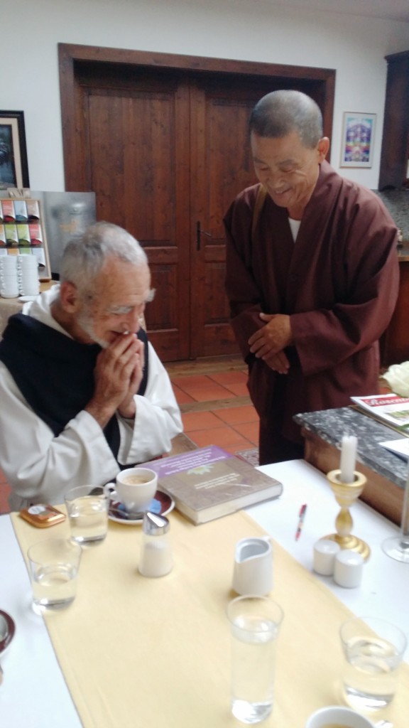 Der Benediktiner David Steindl-Rast ist für viele eine der großen spirituellen Gestalten der christlichen Welt der Gegenwart. Am 12. Juli 2016, wurde er 90 Jahre alt Ein interreligiöser Brückenbauer ist Steindl-Rast spätestens seit 1965, als er von seinem damaligen Abt beauftragt wurde, sich dem Dialog zwischen Christentum und Buddhismus zu widmen.Sunim überreichte ihm voller Freude das Lotus Sutra. Nachdem Heidi ihm vom Stupa erzählte hat er Sunim gefragt wie kann er helfen. Eine berührende Begegnung voll Wertschätzung und liebevoller Zuwendung.